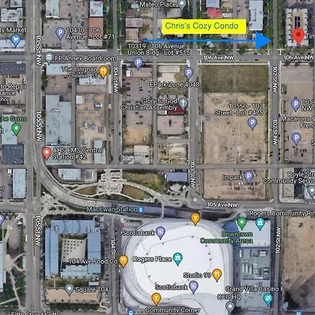 Найближча автобусна зупинка 101 Street & 105 Ave знаходиться за 500 метрів, а Стадіон "Telus Field" - на відстані приблизно 2 км. Серед популярних визначних пам'яток поблизу апартаментів - Роджер Плейс, що знаходиться на відстані приблизно 5 хвилин їзди.